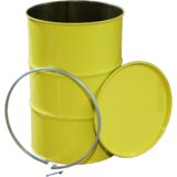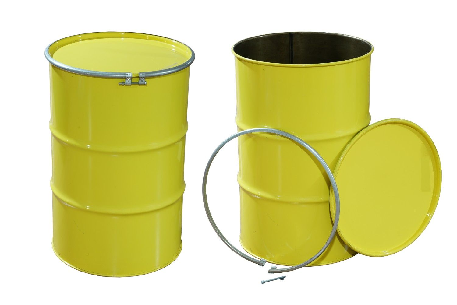 Our open-top steel drum is easy to fill, empty, and clean—ideal for solids, pastes, and waste. The removable lid is secured with a clamp or bolt ring for quick access.